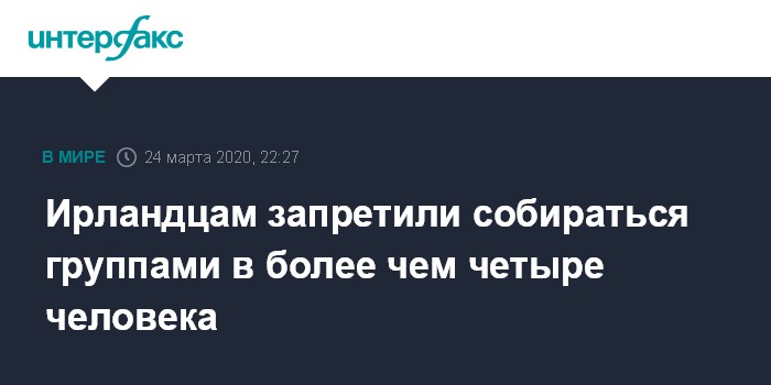 Москва. 24 марта. INTERFAX.RU - Правительство Ирландии объявило во вторник о введении новых ограничительных мер, направленных на то, чтобы сдержать распространение коронавируса, сообщает The Irish Times.