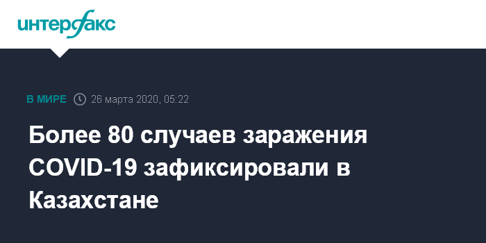 Москва. 26 марта. INTERFAX.RU - Еще пять случаев заболевания коронавирусом произошли в Казахстане, сообщил Минздрав страны.