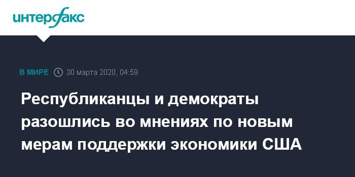 Республиканцы и демократы разошлись во мнениях по новым мерам поддержки экономики США