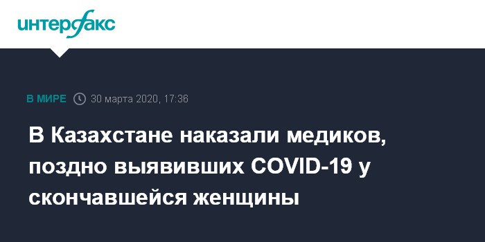 Как сообщалось, 26 марта в Казахстане был зарегистрирован первый летальный случай от коронавируса. Жертва - 64-летняя жительница Акмолинской области.