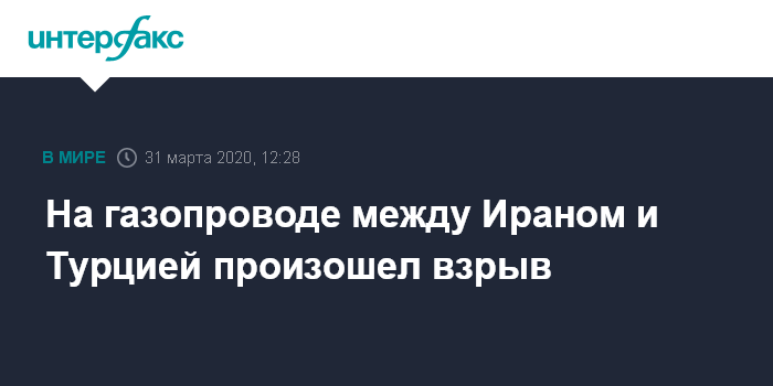 Москва. 31 марта. INTERFAX.RU - Террористы подорвали газопровод, по которому иранский газ поставляется в Турцию. Об этом сообщает Al Arabiya со ссылкой на представителя иранской National Iranian Gas Company.