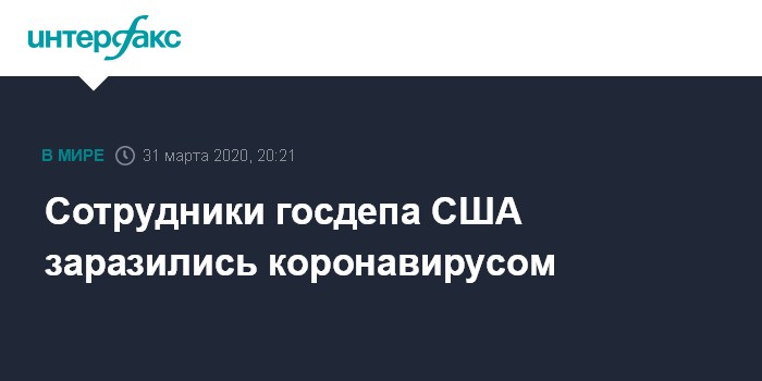 В понедельник в госдепе сообщали, что из 75 тыс. работников ведомства заражены коронавирусом оказались 105 человек - 75 заграницей и 30 непосредственно на территории США. Также в госдепе подтвердили смерть по меньшей мере двух нанятых заграницей сотрудников, зараженных коронавирусом.