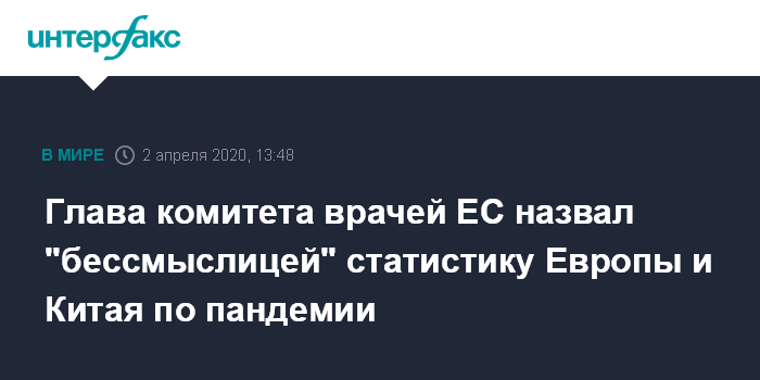 Глава комитета врачей ЕС назвал "бессмыслицей" статистику Европы и Китая по пандемии