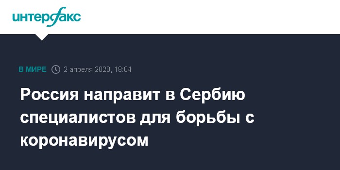 Россия направит в Сербию специалистов для борьбы с коронавирусом