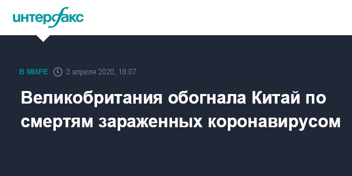 По данным университета Джонса Хопкинса, который ведет статистику заболеваемости, Британия по числу погибших обогнала Китай, где умерли 3326 заразившихся. Рост заболеваемости и смертности ускоряется.