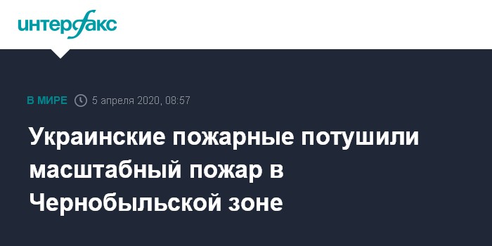 Москва. 5 апреля. INTERFAX.RU - Украинские пожарные с помощью авиации сбросили на открытый огонь в Чернобыльской зоне отчуждения 50 тонн воды, пожар потушен, сообщила Государственная служба Украины по чрезвычайным ситуациям (ГСЧС).