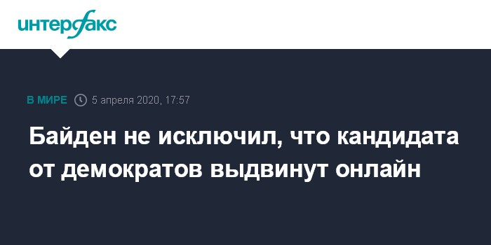 Москва. 5 апреля. INTERFAX.RU -Съезд Демократической партии США, на котором должен быть назван кандидат на пост президента, возможно, придется провести в онлайн-режиме. Так считает один из кандидатов от демократов Джо Байден.