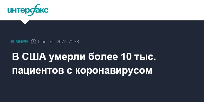 В США умерли более 10 тыс. пациентов с коронавирусом