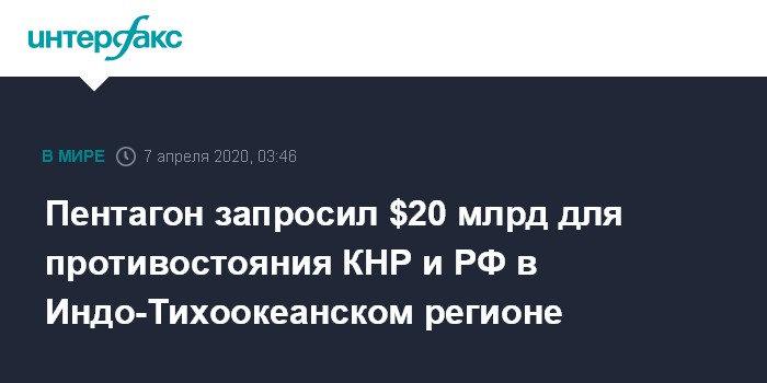 Москва. 7 апреля. INTERFAX.RU - Американские военные направили в Конгресс США запрос о выделении дополнительных $20 млрд, чтобы усилить возможности противостояния Китаю и России в Индо-Тихоокеанском регионе, сообщила во вторник гонконгская газета South China Morning Post.
