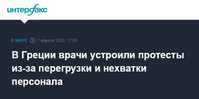 Москва. 7 апреля. INTERFAX.RU - В городах Греции сотрудники больниц устроили 7 апреля молчаливые акции протеста против нехватки средств и персонала в условиях борьбы с коронавирусом, сообщает АР. Акции организовал профсоюз при поддержке коммунистической партии.