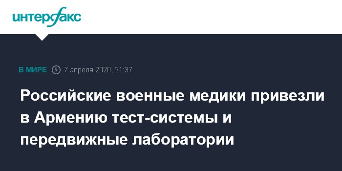 Накануне, 6 апреля, сообщалось, что по инициативе армянской стороны состоялся телефонный разговор президента РФ Владимира Путина с премьер-министром Армении Николом Пашиняном. Политические лидеры обсудили меры по борьбе с коронавирусом. Пашинян поблагодарил за оказываемую Москвой помощь в этой сфере, сообщала пресс-служба Кремля.