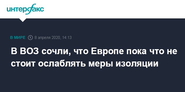 Москва. 8 апреля. INTERFAX.RU - Для стран Европы еще не настало время ослаблять ограничительные меры, введенные для сдерживания пандемии коронавируса COVID-19, заявил в среду директор европейского отдела Всемирной организации здравоохранения Ханс Клюге.