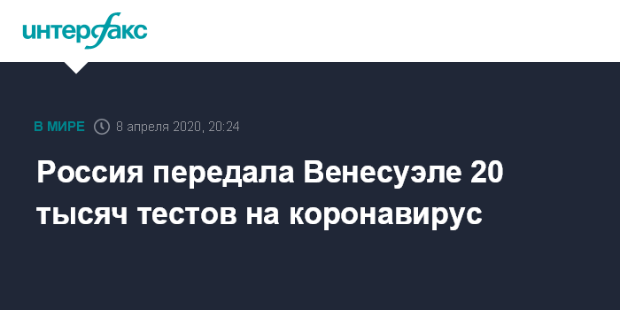 "Груз с 20000 медицинскими диагностическими тестами на COVID-19 прибыл из России сегодня, 8 апреля, в Каракас", - сказал высокопоставленный российский дипломат.