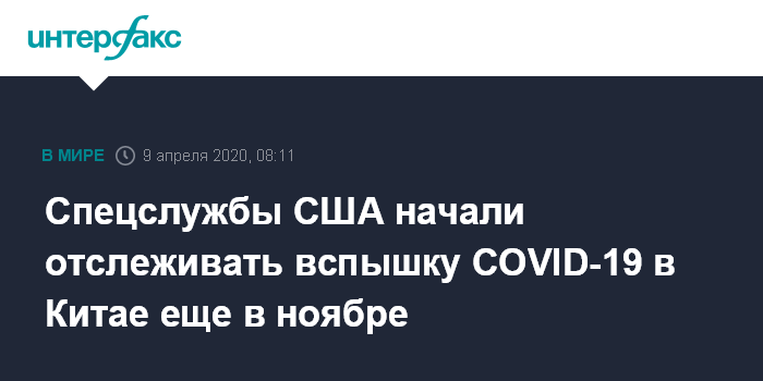 Cпецслужбы США начали отслеживать вспышку COVID-19 в Китае еще в ноябре