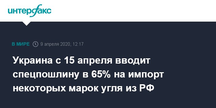 Украина с 15 апреля вводит спецпошлину в 65% на импорт некоторых марок угля из РФ