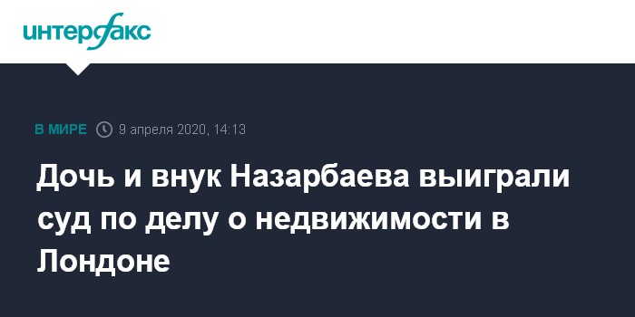 В материале FT отмечается: Высокий суд Великобритании постановил, что Национальное криминальное агентство Великобритании ошибочно утверждало, что лондонская недвижимость во владении дочери и внука Назарбаева общей стоимостью 80 млн фунтов стерлингов были куплены на средства, заработанные нечестным путем. При этом Национальное криминальное агентство Великобритании планирует обжаловать решение суда.