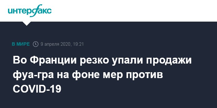 По его подсчетам, около 60% рынков сбыта подобной продукции в настоящее время закрыты. Кроме того, продажи фуа-гра в гипер- и супермаркетах на первой неделе апреля упали на 50%.