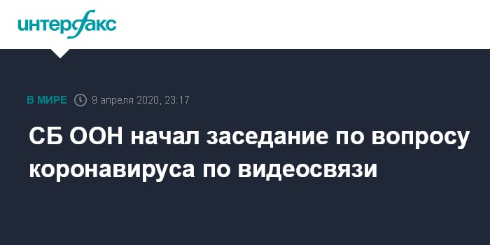Москва. 9 апреля. INTERFAX.RU - Первое заседание Совета Безопасности ООН по проблеме коронавируса проходит в настоящий момент по видеосвязи.