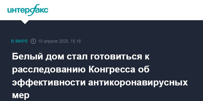Белый дом стал готовиться к расследованию Конгресса об эффективности антикоронавирусных мер