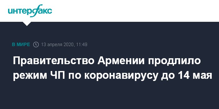 Правительство Армении продлило режим ЧП по коронавирусу до 14 мая