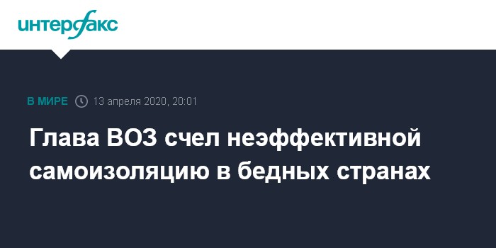 Глава ВОЗ счел неэффективной самоизоляцию в бедных странах
