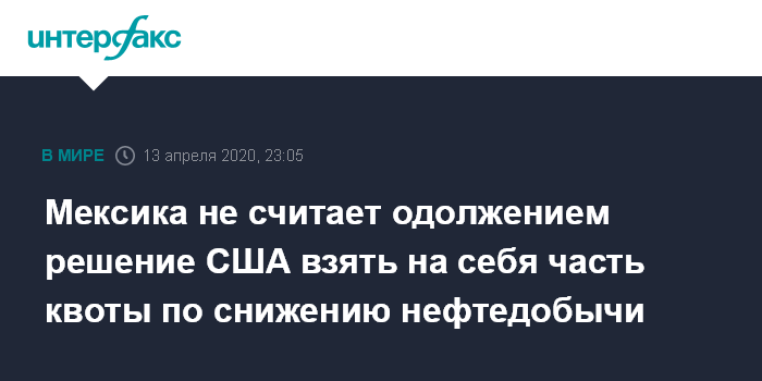 Президент Мексики Андрес Мануэль Лопес Обрадор в конце прошлой недели заявил, что по итогам разговора с Трампом Мексика согласовала с ОПЕК+ и США сокращение нефтедобычи только на 100 тыс. б/с. США тогда объявили, что возьмут на себя нагрузку по снижению в 250 тыс. б/с. При этом Трамп отмечал, что позже Мексика должна будет рассчитаться с США за эту услугу.