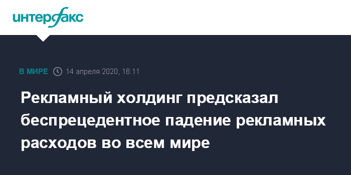 Рекламный холдинг предсказал беспрецедентное падение рекламных расходов во всем мире