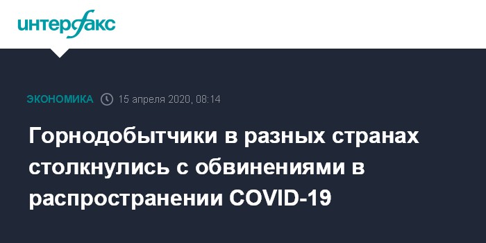 Москва. 15 апреля. INTERFAX.RU - Горнодобывающие компании в разных странах сталкиваются с протестами местных жителей, которые обвиняют их сотрудников в распространении коронавируса, The Wall Street Journal.