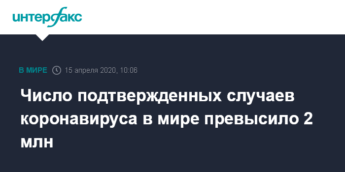 Число подтвержденных случаев коронавируса в мире превысило 2 млн