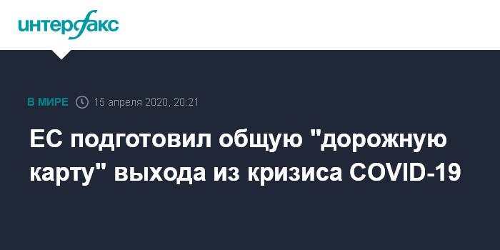 Москва. 15 апреля. INTERFAX.RU - Европейская комиссия и Европейский совет подготовили общую "дорожную карту" выхода стран ЕС из кризиса COVID-19 и возвращения европейских обществ и экономик к нормальному функционированию и к устойчивому росту.