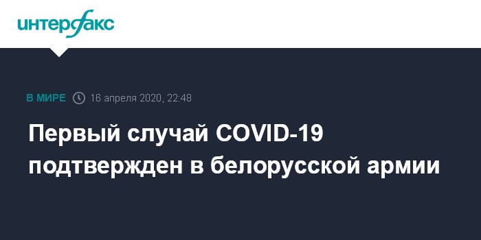 Москва. 16 апреля. INTERFAX.RU - В белорусской армии подтверждено первое заражение коронавирусом COVID-19 у военнослужащего, сообщила официальный представитель минобороны Белоруссии Наталья Гаврусик.