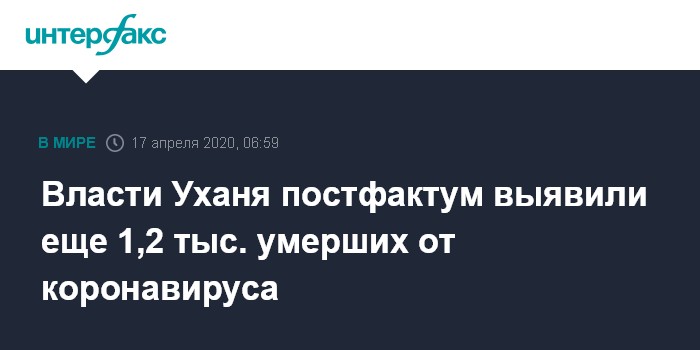 Власти Уханя постфактум выявили еще 1,2 тыс. умерших от коронавируса