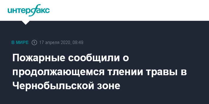 Москва. 17 апреля. INTERFAX.RU - На утро 17 апреля в Чернобыльской зоне отчуждения продолжали тлеть травяной настил, пеньки и древесина в ячейках, уже пройденных огнем, сообщила Госслужба Украины по чрезвычайным ситуациям (ГСЧС). В начале апреля в этой зоне прошел обширный пожар, его потушили, но 16 апреля он возобновился.