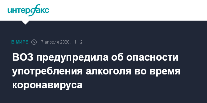 ВОЗ предупредила об опасности употребления алкоголя во время коронавируса