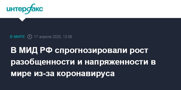 В МИД РФ спрогнозировали рост разобщенности и напряженности в мире из-за коронавируса