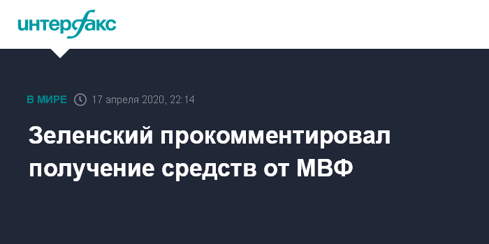 Москва. 17 апреля. INTERFAX.RU - Президент Украины Владимир Зеленский заявил, что властями страны не рассматривается сценарий с объявлением дефолта, и Украина намерена получить финансовую помощь от Международного валютного фонда.
