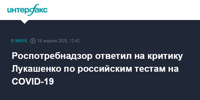 Роспотребнадзор ответил на критику Лукашенко по российским тестам на COVID-19