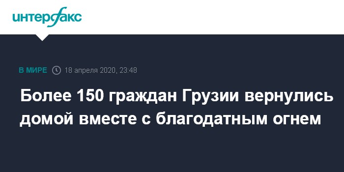 Москва. 18 апреля. INTERFAX.RU - Спецрейс Тель-Авив - Тбилиси с благодатным огнем привез 152 гражданина Грузии на родину, сообщил корреспондент "Интерфакса".