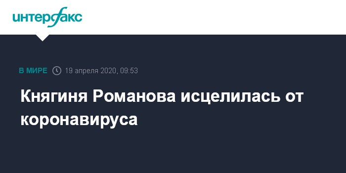 Москва. 19 апреля. INTERFAX.RU - Глава Российского императорского Дома Романовых великая княгиня Мария Владимировна исцелилась от коронавируса.