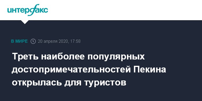 Москва. 20 апреля. INTERFAX.RU - Около трети наиболее популярных туристических объектов Пекина открылись для посещения, все они расположены на открытом воздухе, сообщают в понедельник китайские СМИ.