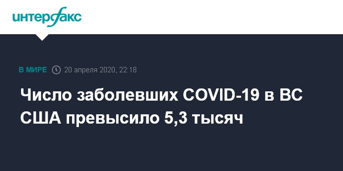 Число летальных исходов достигло 22, в том числе один моряк скончался на атомном авианосце "Теодор Рузвельт", где произошла вспышка коронавируса, поразившего уже около 700 моряков.