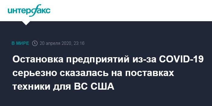 Остановка предприятий из-за COVID-19 серьезно сказалась на поставках техники для ВС США