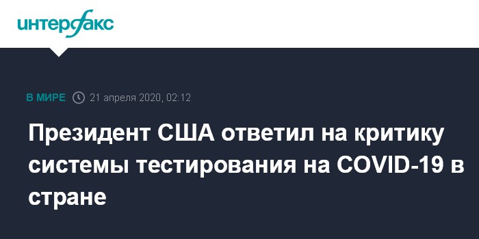 Москва. 21 апреля. INTERFAX.RU - Президент США Дональд Трамп в понедельник заявил, что система тестирования на наличие коронавируса хорошо налажена во всей стране.