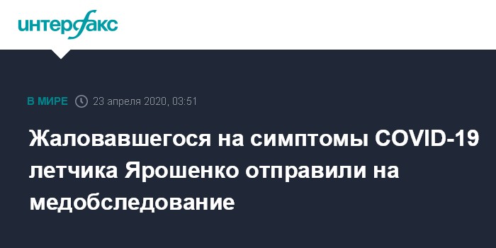 Жаловавшегося на симптомы COVID-19 летчика Ярошенко отправили на медобследование