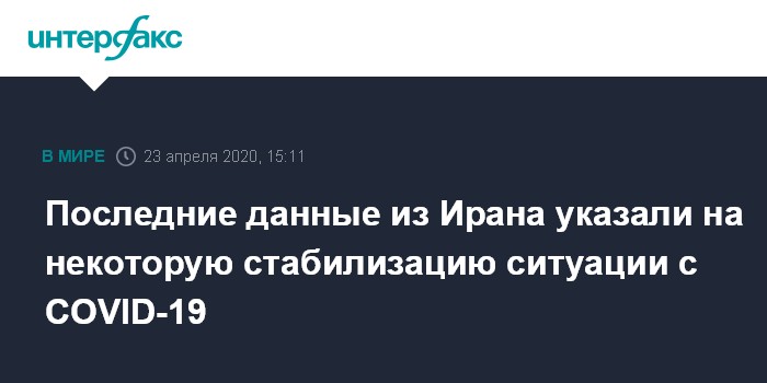 Москва. 23 апреля. INTERFAX.RU - Относительно стабильная ситуация по COVID-19 уже на протяжении недели наблюдается в Иране, свидетельствуют статистические данные, распространенные в четверг иранским Минздравом.