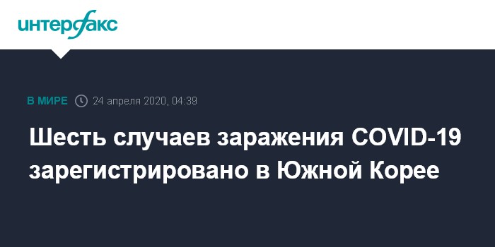 Москва. 24 апреля. INTERFAX.RU - Новые шесть случаев заражения COVID-19 зарегистрировано в Южной Корее за минувшие сутки, сообщает Корейский центр по контролю и профилактике заболеваний (KCDC).