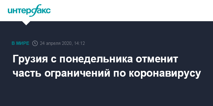 "С понедельника мы начинаем отмену некоторых ограничений. В частности, допускается передвижение транспорта, в том числе такси. Полностью допускается восстановление онлайн-торговли, работа открытых аграрных рынков", - сказал Гахария, представляя антикризисную программу правительства.