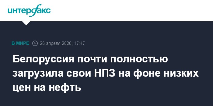 Белоруссия почти полностью загрузила свои НПЗ на фоне низких цен на нефть