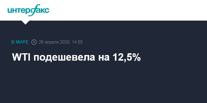 К 14:28 по московскому времени июньские фьючерсы на WTI дешевели на торгах Нью-йоркской товарной биржи (NYMEX) на 12,52% ($1,6) - до $11,18 за баррель. Июньские фьючерсы на Brent к этому времени торговались в Лондоне у $19,92 за баррель, что на 0,35% ($0,07) ниже цены на закрытие предыдущей сессии. Ранее во вторник падение их цены превышало 5%.