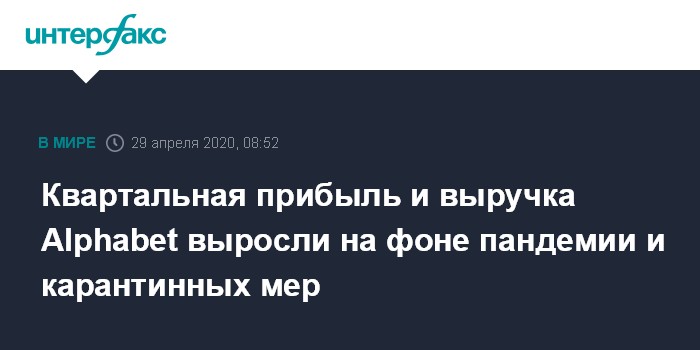 Квартальная прибыль и выручка Alphabet выросли на фоне пандемии и карантинных мер